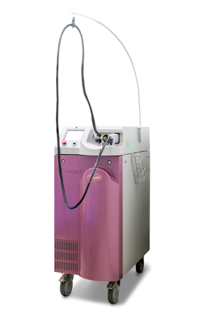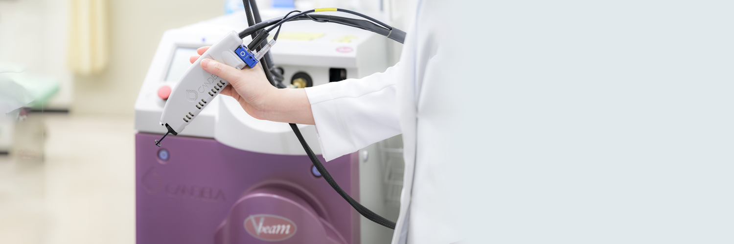 赤ら顔、赤あざ、血管腫などの血液中のヘモグロビン(赤色)に反応するレーザーです。血管の太さや赤みの強さによって照射設定を調整し、冷却ガスで皮膚へのダメージを軽減しながら照射します。疾患によって効果が変わりますが、血管腫の場合は1回から複数回の治療で縮小、改善効果を見込めることがあります。効果には個人差があり、十分な改善が得られない場合があります。レーザーを当てた部分は紫色や茶色に変化し、ときに水ぶくれになることもあります。その後、黒ずみ(色素沈着)や色が抜ける(色素脱失)などの変化がしばしば起こりますが、数か月の経過で改善することが多いです。